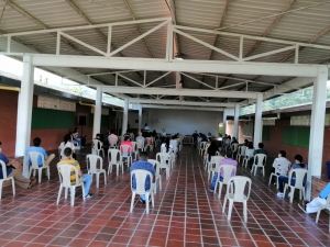 - Luego del lavado de manos, los estudiantes se dirigen a su aula de clase asignada que cumple con el aforo y ventilación adecuada, donde los espera el docente del primer bloque de clase quien les aplicará alcohol a cada estudiante para ingresar al aula y le asignará su pupitre individual.